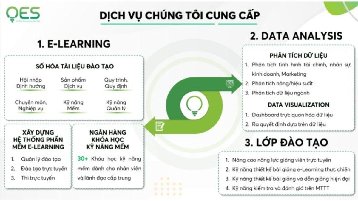 Trong số các nhà cung cấp LMS cho doanh nghiệp uy tín tại Việt Nam, OES được xem là đơn vị tiên phong với hơn 10 năm kinh nghiệm tư vấn và triển khai hệ thống e-Learning toàn diện. Không chỉ dừng lại ở việc cung cấp nền tảng công nghệ, OES mang đến giải pháp đào tạo số trọn gói bao gồm: thiết kế bài giảng e-Learning tương tác, xây dựng hệ thống LMS tối ưu trải nghiệm người dùng, và phân tích dữ liệu học tập chuyên sâu giúp doanh nghiệp quản trị hiệu quả toàn bộ hoạt động đào tạo.
